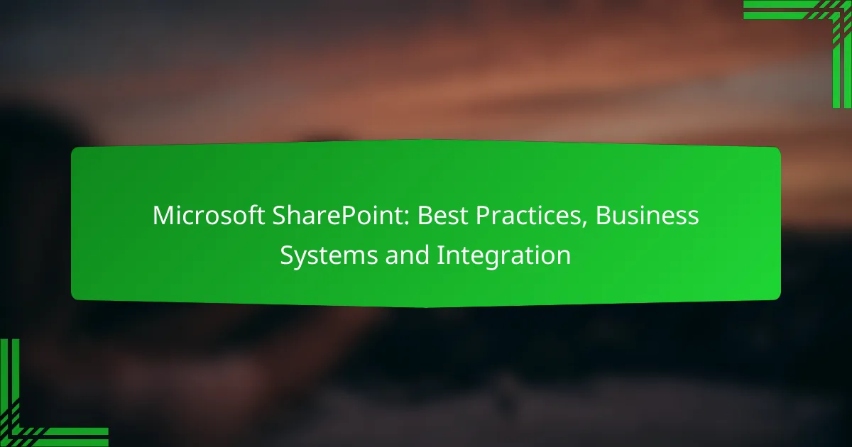 Microsoft SharePoint is a powerful platform that enhances collaboration and optimizes document management through best practices focused on security and user experience. By integrating SharePoint with other Microsoft applications and third-party tools, businesses can streamline workflows and improve communication, ultimately boosting productivity across teams.